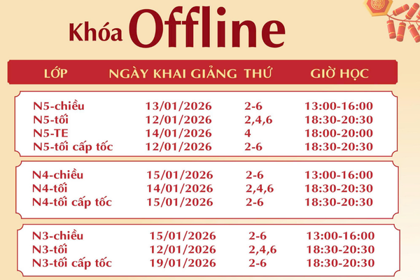 ►Giảm ngay 20% khi đăng ký COMBO khóa N5 - N3 OFFLINE 20.800.000 VNĐ????16.640.000 VNĐ
