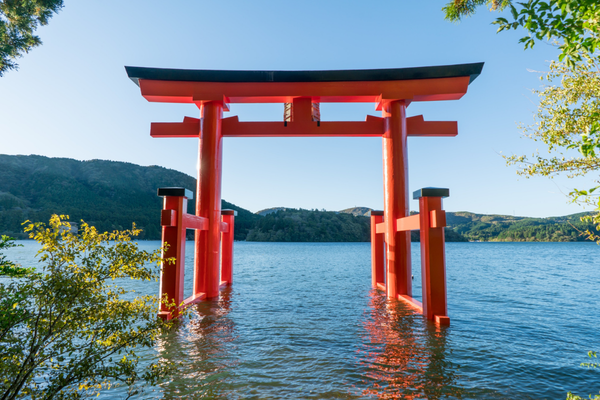 Nằm bên hồ Ashi, Heiwa no Torii nổi bật với sắc đỏ rực rỡ giữa mặt nước trong xanh và núi rừng bao quanh. Đây là một trong những cổng Torii được săn đón nhiều nhất bởi du khách và nhiếp ảnh gia. Ngoài check-in, du khách còn có thể dạo bước trong quần thể đền linh thiêng giữa rừng, nổi tiếng với những lời cầu bình an, may mắn và tình duyên.