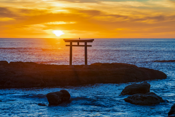 Đứng vững trên mỏm đá giữa sóng biển Thái Bình Dương, Kamiiso no Torii mang vẻ đẹp hùng vĩ và linh thiêng. Khoảnh khắc ấn tượng nhất là lúc bình minh, khi mặt trời mọc đúng giữa hai cột cổng – cũng là lý do nơi đây trở thành điểm ngắm Hatsu-hinode nổi tiếng mỗi dịp đầu năm.